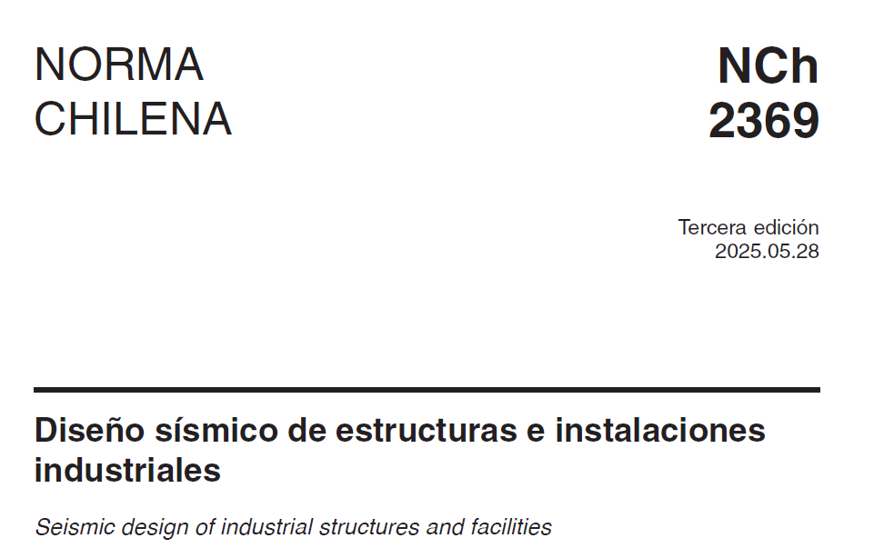 La norma NCh2369:2003 fue por más de dos décadas el referente para el diseño sísmico industrial en Chile. Su contenido quedó validado tras el sismo del 27 de febrero de 2010, cuando numerosas estructuras e instalaciones diseñadas bajo esa normativa mostraron un comportamiento estructural satisfactorio. Pese a lo anterior, la experiencia acumulada en grandes proyectos industriales, el desarrollo de nuevas metodologías de análisis, el estudio de los suelos y los avances en modelación estructural impulsaron su actualización que significó un trabajo de varios años de expertos dirigidos por el INN, quien el año 2023 publicó una versión actualizada de la norma NCh 2369 que fue sometida a una consulta pública técnica acotada y que finalmente quedó bajos los términos de una tercera edición del año 2025.